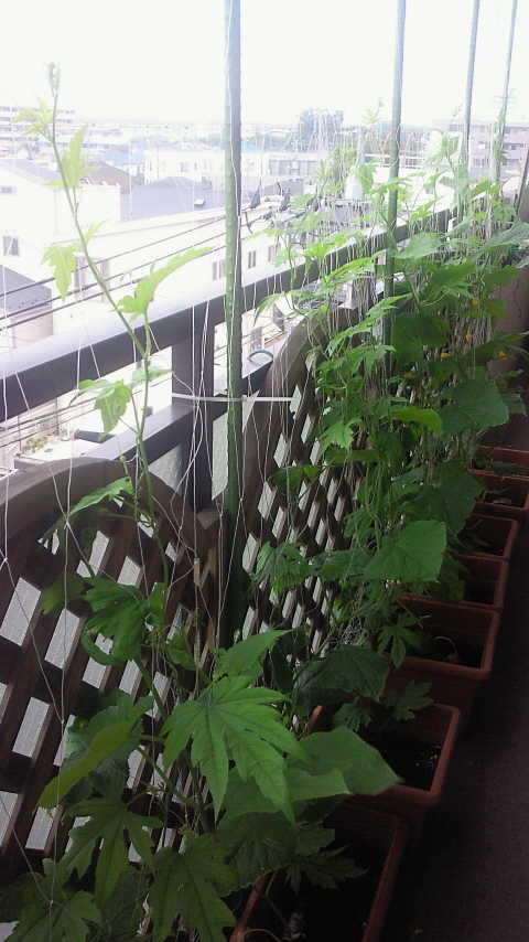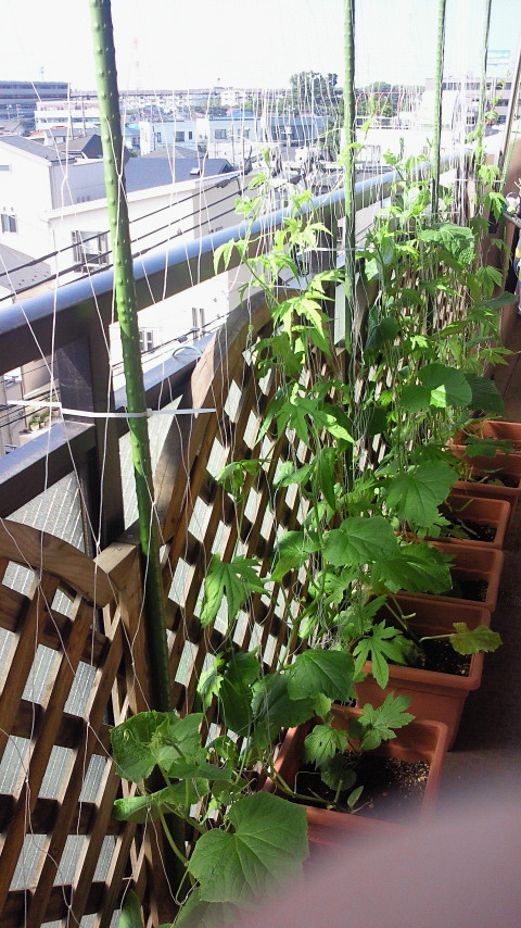 葉をつまめるようになるのはいつの日か・・・。 今年の夏はグリーンカーテンでエコに生活できますように。