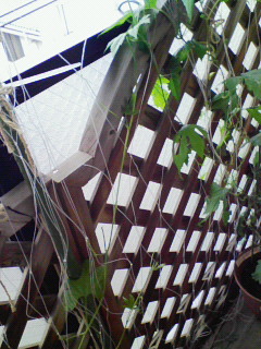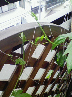 葉をつまめるようになるのはいつの日か・・・。 今年の夏はグリーンカーテンでエコに生活できますように。