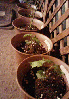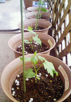 ブルー以外、支柱を立てました。うまく支柱を見つけたようで、しっかりからんでいます。
