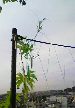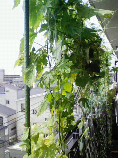 葉をつまめるようになるのはいつの日か・・・。 今年の夏はグリーンカーテンでエコに生活できますように。