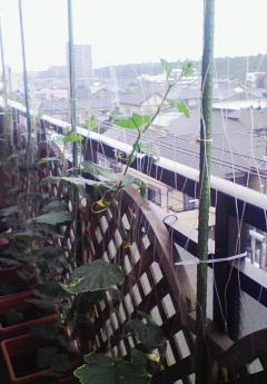 葉をつまめるようになるのはいつの日か・・・。 今年の夏はグリーンカーテンでエコに生活できますように。